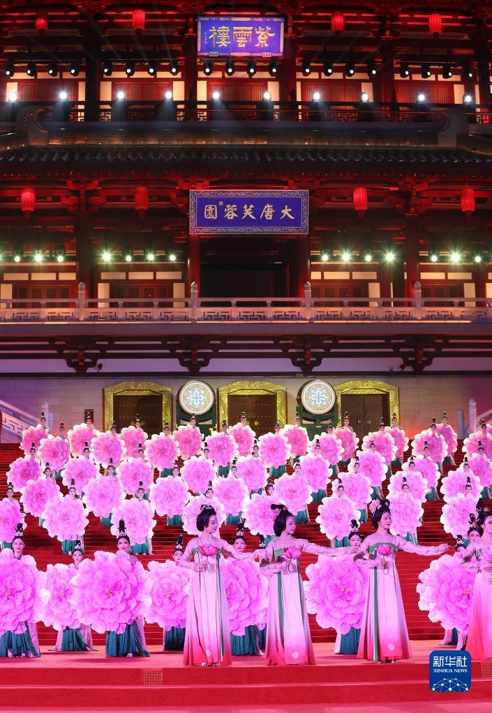 5月18日晚,出席中國-中亞峰會的中亞國家元首夫婦陸續抵達陜西省西安市大唐芙蓉園,參加在這里舉行的歡迎儀式。這是演員在歡迎儀式上表演。新華社記者 徐子鑒 攝