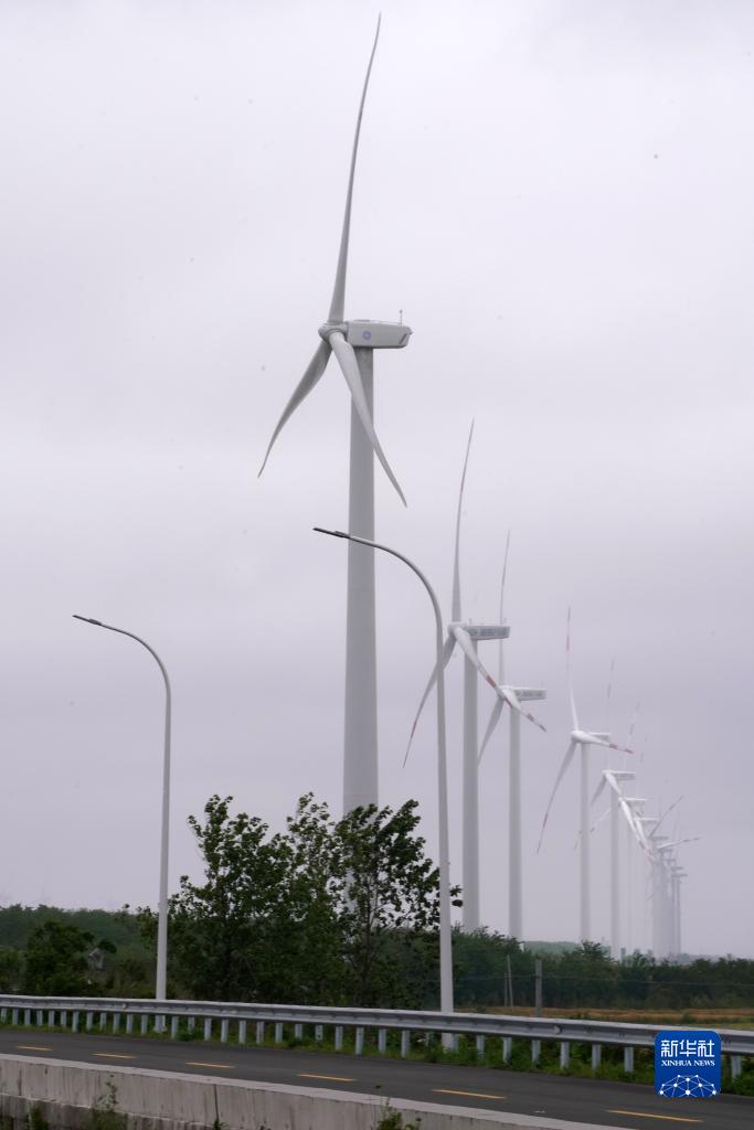 5月18日在江蘇如東小洋口風電產業園拍攝的風電設施。