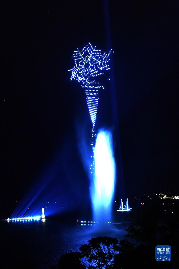 當晚,無人機光影音樂秀在瑞士日內瓦湖上舉行,超過1350架無人機點亮夜空,吸引市民駐足觀看。