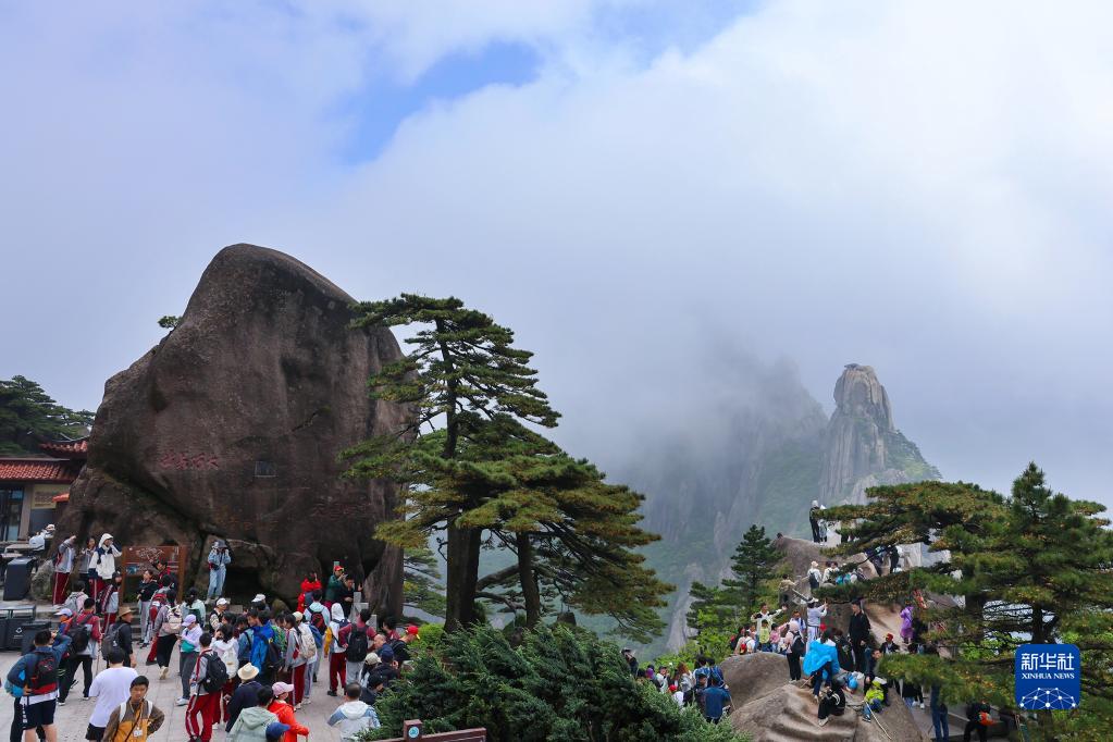 5月18日,游客在安徽黃山風景區玉屏景區游覽。