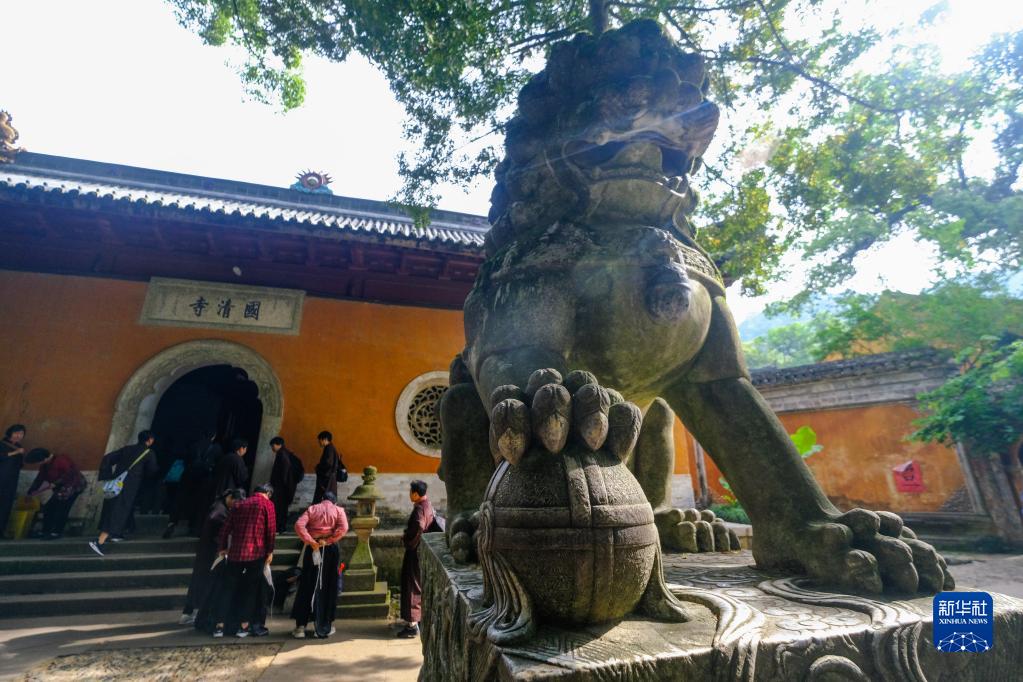 5月16日,游客在浙江省臺州市天臺縣國清寺參觀。