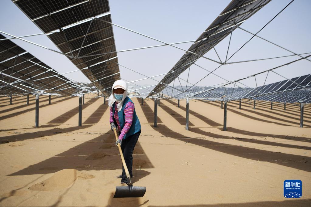 近年來,甘肅省武威市涼州區持續探索光伏治沙新模式,在騰格里沙漠重點實施立體光伏治沙產業化示范項目,建設光伏電站的同時,在光伏板下栽植耐旱沙生植物,將太陽能開發與騰格里沙漠治理有機結合,實現經濟效益和生態效益雙贏。