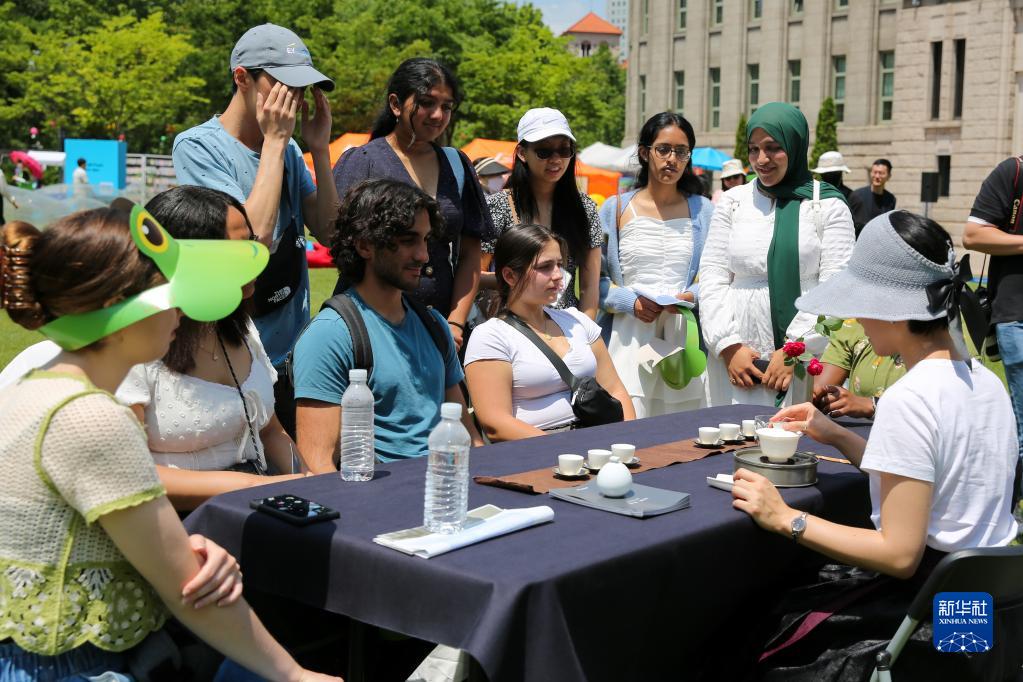 5月19日,人們在韓國首爾廣場品嘗中國茶。