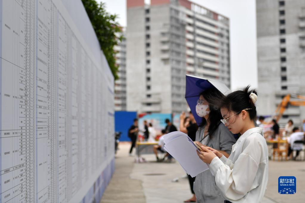 5月19日,在中南林業科技大學涉外學院,應屆畢業生查看崗位信息。