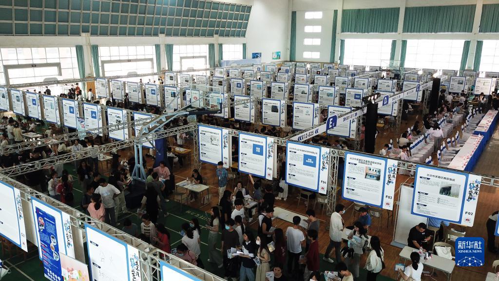 這是5月19日在中南林業科技大學涉外學院拍攝的招聘會現場(無人機照片)。