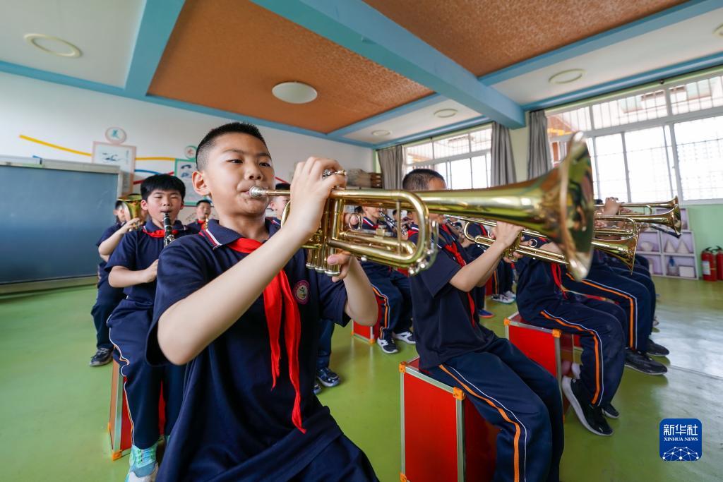 5月19日,河北省灤南縣第一實驗小學銅管樂器社團的學生在排練。