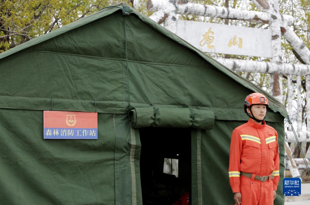5月16日,在黑龍江呼瑪縣,大興安嶺地區森林消防支隊呼瑪縣大隊二十中隊指戰員在位于國家AAA級景區畫山的森林消防站執勤。