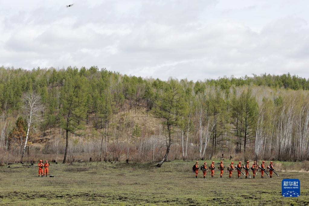 5月17日,在黑龍江呼瑪縣,大興安嶺地區森林消防支隊呼瑪縣大隊十二站駐防點指戰員開展以水滅火演練。