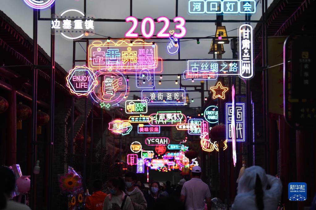當日,位于甘肅省蘭州市西固區黃河岸邊的河口古鎮“黃河燈展”正式亮燈。此次燈展以“河口耀千年·絲路映萬古”為主題,各類燈組交相輝映,吸引眾多游客前來游覽。此次燈展將持續到10月底。燈展活動期間,河口古鎮還將舉辦盛裝巡游等活動,為游客帶來豐富的參觀體驗。