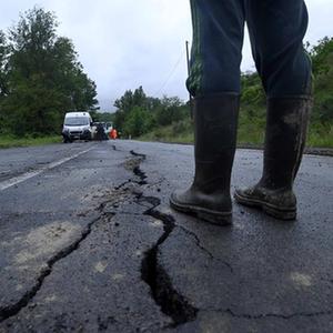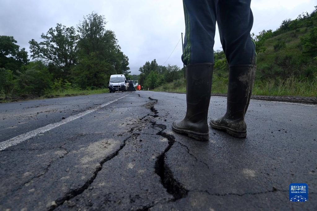 5月19日,在意大利北部艾米利亞-羅馬涅大區博洛尼亞,山體滑坡造成地面出現裂縫。