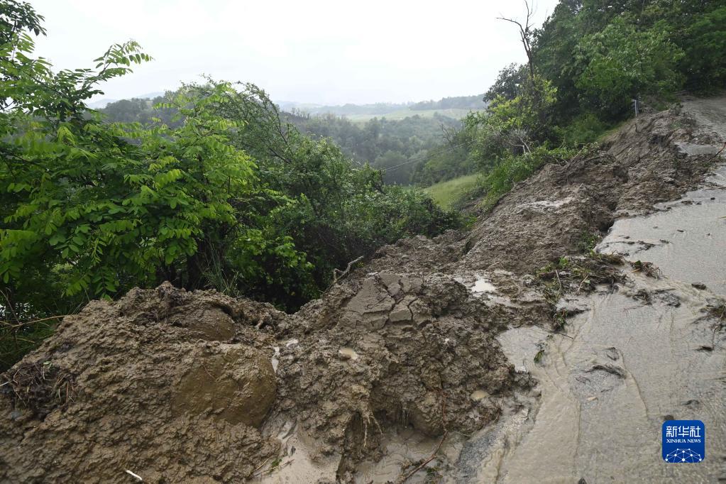 這是5月19日在意大利北部艾米利亞-羅馬涅大區博洛尼亞拍攝的山體滑坡現場。