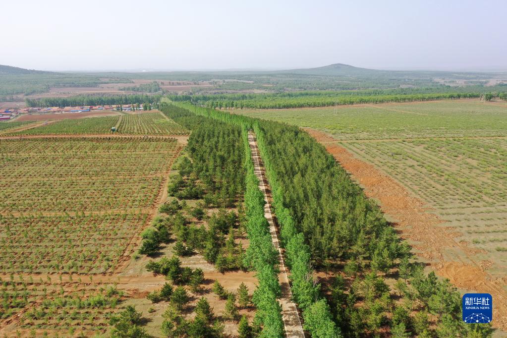 夏日時節,山西省右玉縣處處綠意盎然,森林、村落、農田組成一幅美麗的生態畫卷。