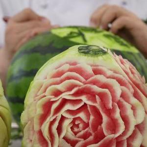 5月20日,評委在評選西瓜。