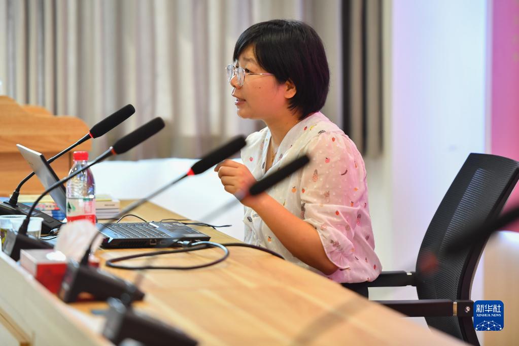 在湘潭市雨湖區廣場街道和平社區,扶婷在法律科普講座上科普法律知識(5月19日攝)。