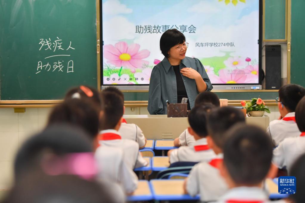 在湘潭市雨湖區風車坪學校,扶婷向五年級學生分享她的助殘故事(5月19日攝)。