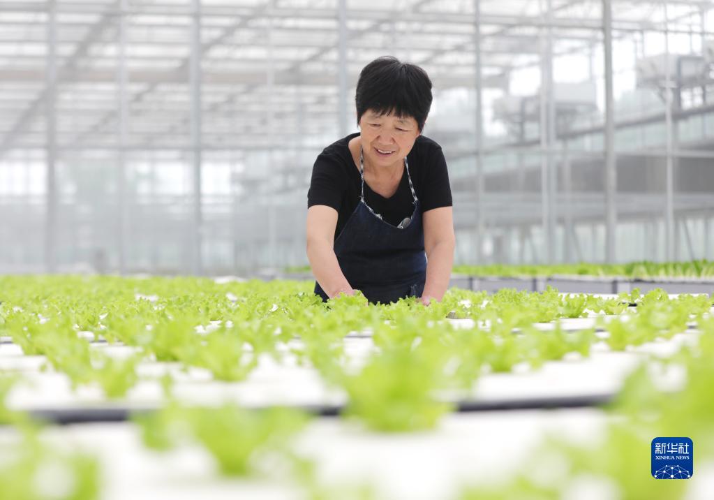 5月20日,河北省保定市徐水區一家現代農業示范園區的工作人員在智能溫室內查看水培蔬菜生長情況。