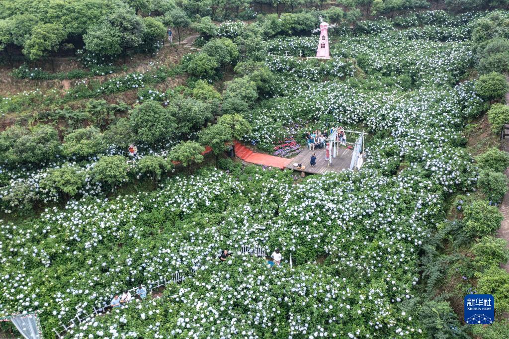 這是5月20日在柏樹村拍攝的繡球花(無人機照片)。