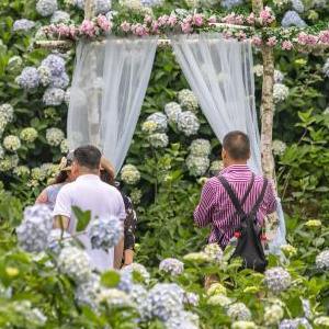 近日,重慶市巴南區石龍鎮柏樹村繡球花基地的400畝繡球花競相綻放,美不勝收,吸引不少游客前來賞花游玩。