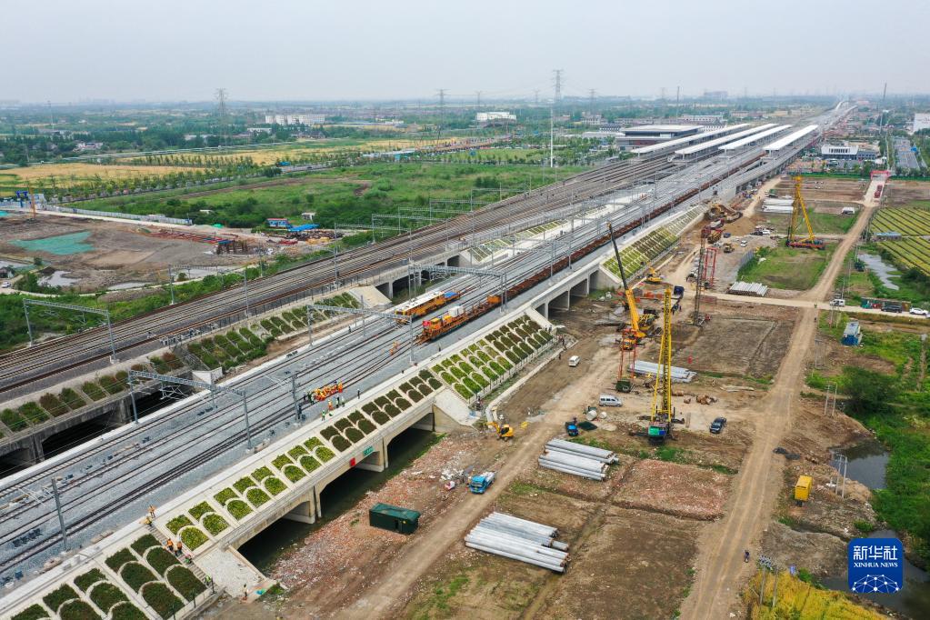 這是5月20日拍攝的滬寧沿江高鐵太倉站施工現場(無人機照片)。