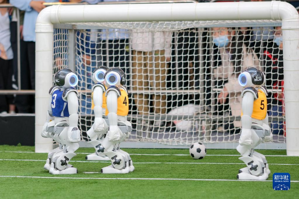 這是5月20日拍攝的機器人足球標準平臺組比賽現場。