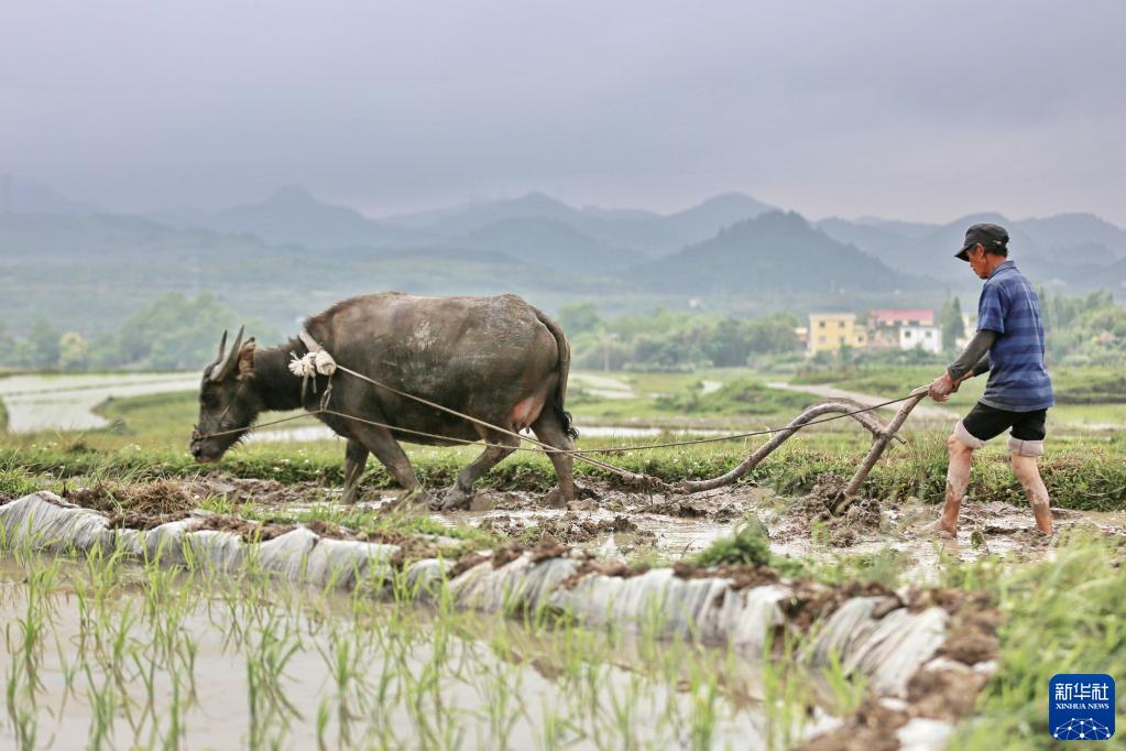 5月20日,貴州省貴陽市花溪區高坡鄉擺龍村村民在耕田。