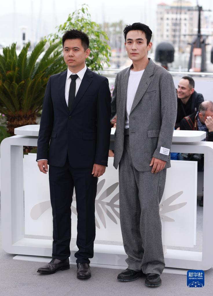 5月20日,在法國戛納舉行的第76屆戛納國際電影節上,中國導演魏書鈞(左)和演員朱一龍亮相影片《河邊的錯誤》拍照式。