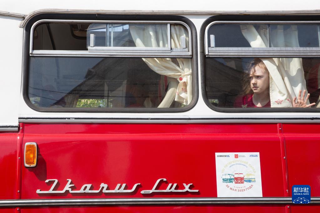 5月20日,一名女孩在俄羅斯圣彼得堡參觀街頭老爺車展。