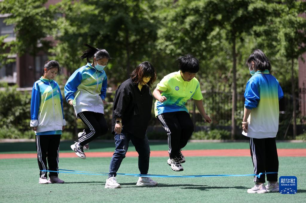 5月18日,午休時間,莊巖帶著學生在操場上跳皮筋,這項普通的運動對于視障孩子來說是非常有挑戰性的,也是鍛煉孩子感知和定位能力的一項好運動。