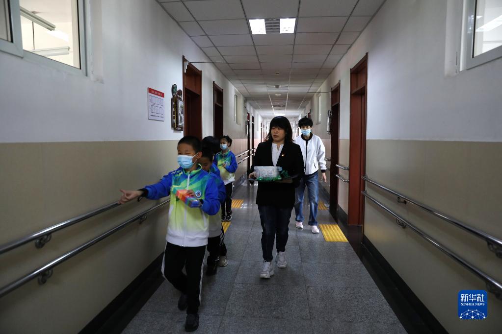 5月18日,莊巖帶著學生走在走廊里,準備去上手工美術課。