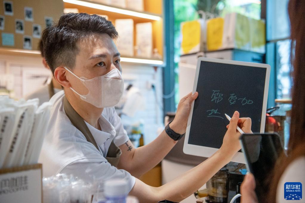 張凌云是一名聾人咖啡師,兩年前參加了聾人咖啡師培訓并考取咖啡師證。如今,她和另外五名聾人咖啡師一起,在名為“一角咖啡”的咖啡店里工作,醇香的咖啡吸引了不少顧客。