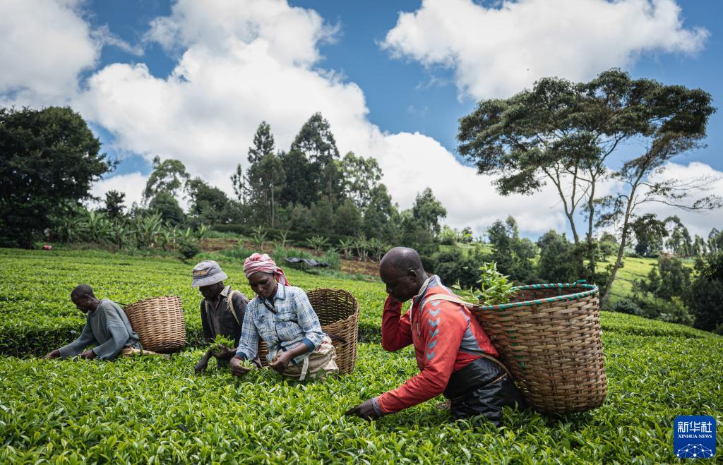 這是2023年5月4日,工人在肯尼亞首都內羅畢附近的茶園采茶。