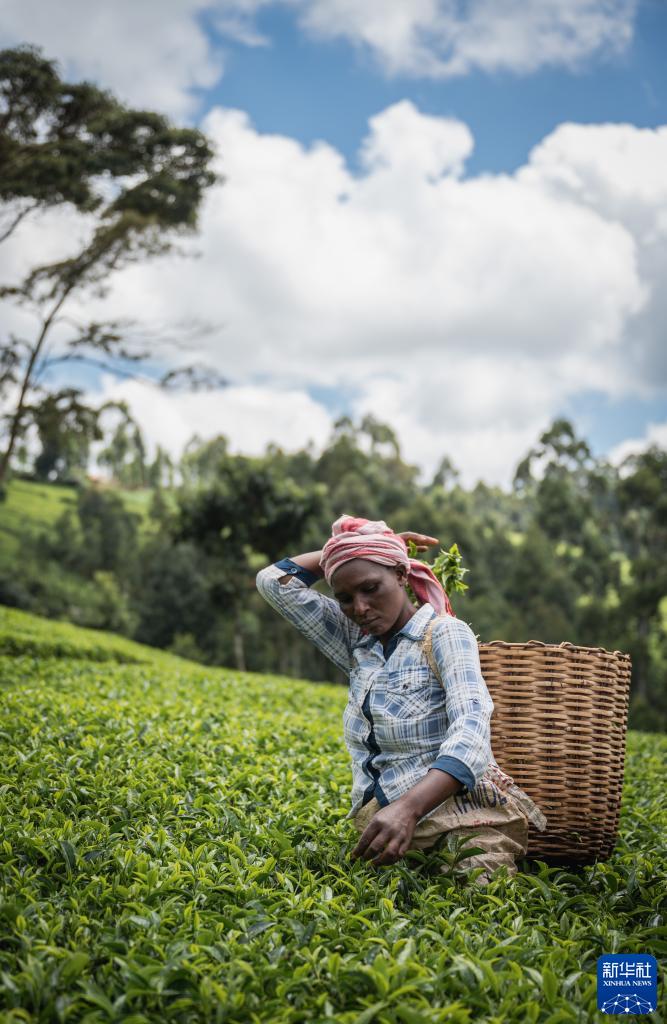 這是2023年5月4日,工人在肯尼亞首都內羅畢附近的茶園采茶。