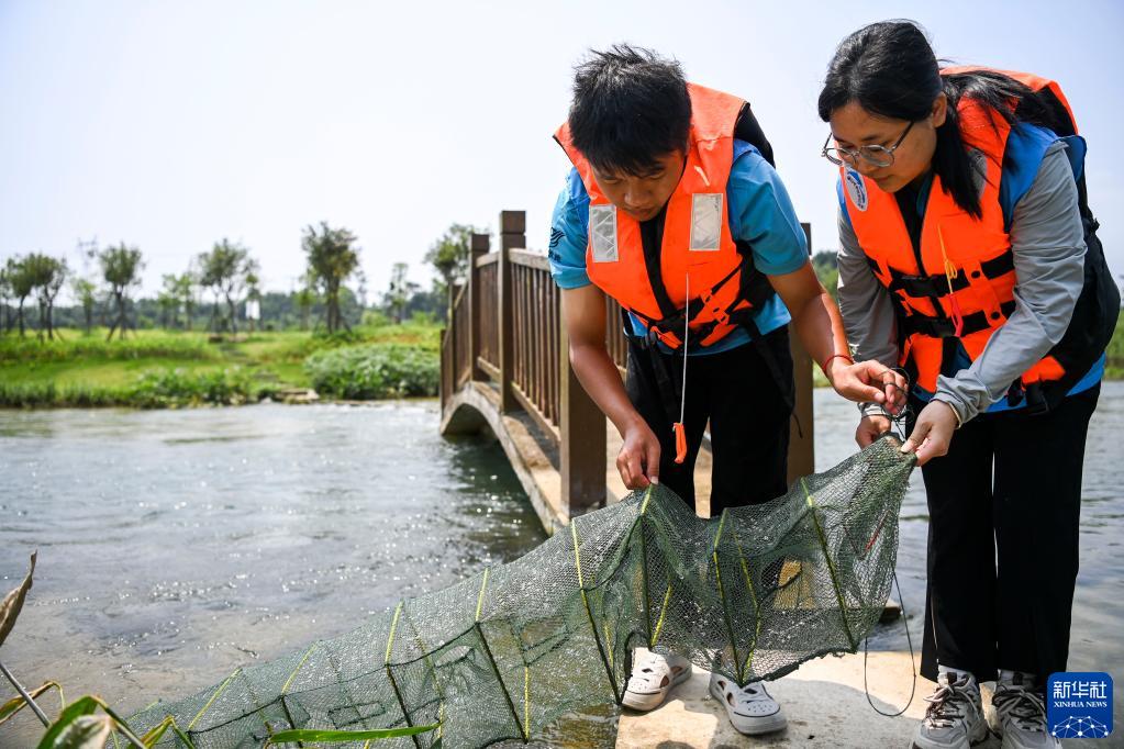 5月20日,技術人員在廣西大藤峽水利樞紐工程南木江副壩仿自然生態魚道回收用于監測過魚種類的地籠網。