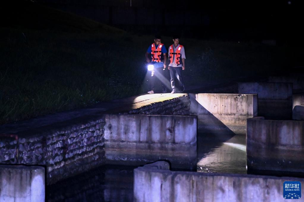 5月20日,技術人員對廣西大藤峽水利樞紐工程南木江副壩仿自然生態魚道進行夜間監測作業。