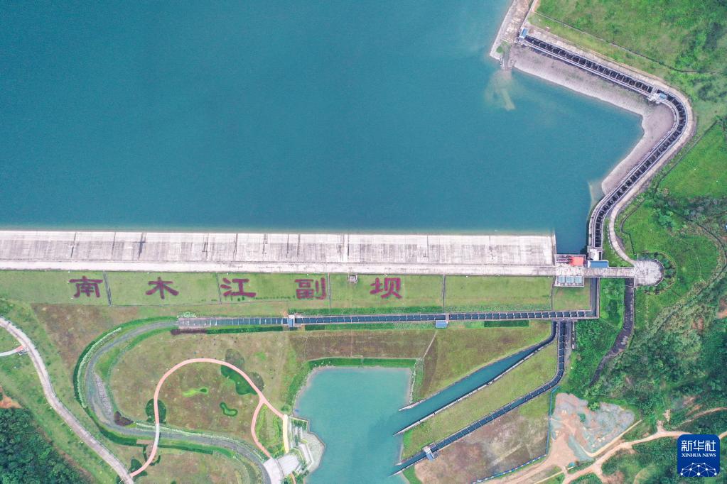 這是5月20日拍攝的廣西大藤峽水利樞紐工程南木江副壩仿自然生態魚道(無人機照片)。