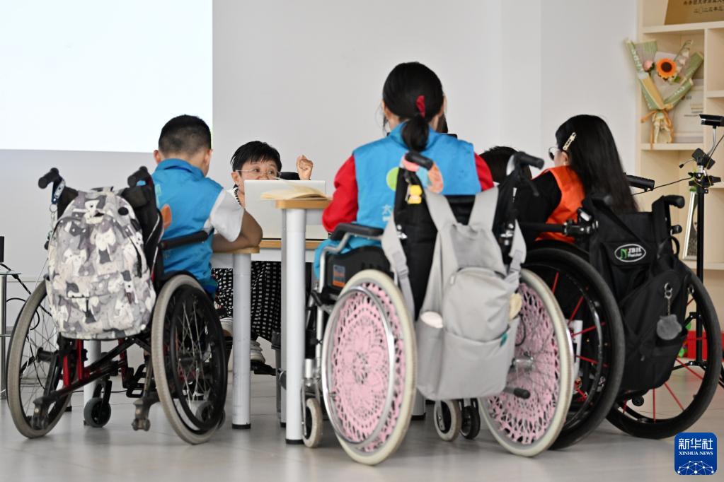 在天津市太陽語罕見病心理關懷中心,魏瑞紅跟病友交流(5月17日攝)。