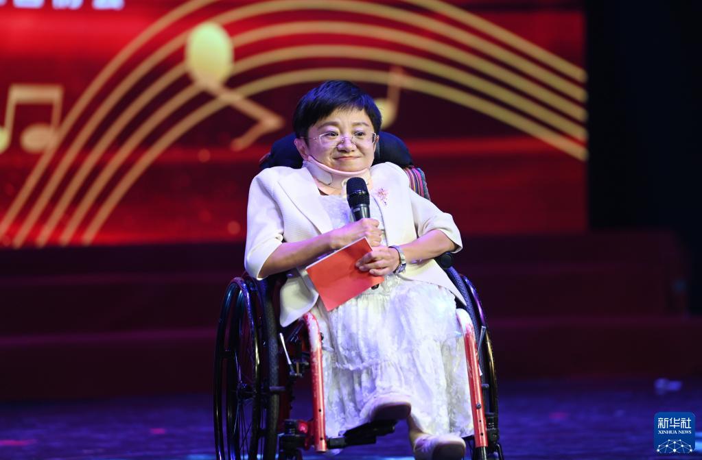 在天津市第三十三次全國助殘日活動現場,魏瑞紅在舞臺上發言(5月16日攝)。