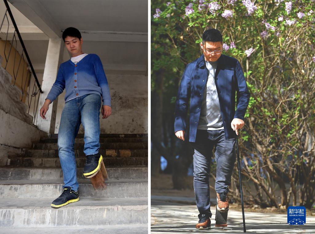 拼版照片: 左圖為2014年4月16日,趙強在社區走訪(新華社記者姚劍鋒攝攝);右圖為2023年4月18日,趙強在小區內散步(新華社記者楊青攝)。