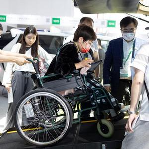 5月21日,在2023中國國際福祉博覽會上,觀眾在咨詢康復器具。