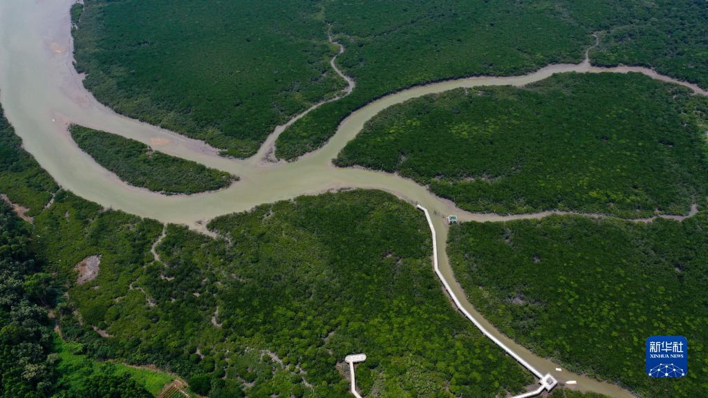 這是廣西山口紅樹林保護區一角(5月20日攝,無人機照片)。