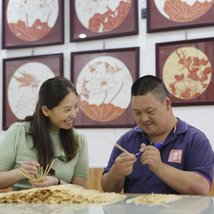 夫妻倆推行殘疾人就業項目,每年拿出收入的20%作為傳承經費,包吃包住免費向殘疾人傳授蘆葦畫手工技藝。據介紹,公司至今累計培訓學員9000多人次,已發展成“國家級殘疾人非遺傳習基地”“國家級殘疾人文化創意產業基地”。
