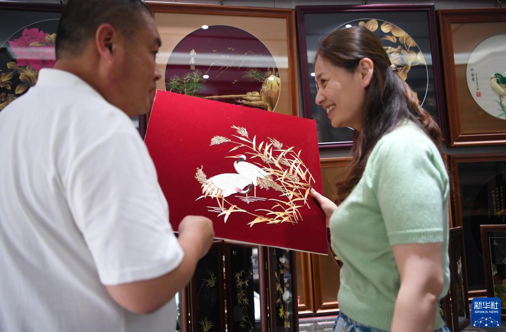 夫妻倆推行殘疾人就業項目,每年拿出收入的20%作為傳承經費,包吃包住免費向殘疾人傳授蘆葦畫手工技藝。據介紹,公司至今累計培訓學員9000多人次,已發展成“國家級殘疾人非遺傳習基地”“國家級殘疾人文化創意產業基地”。