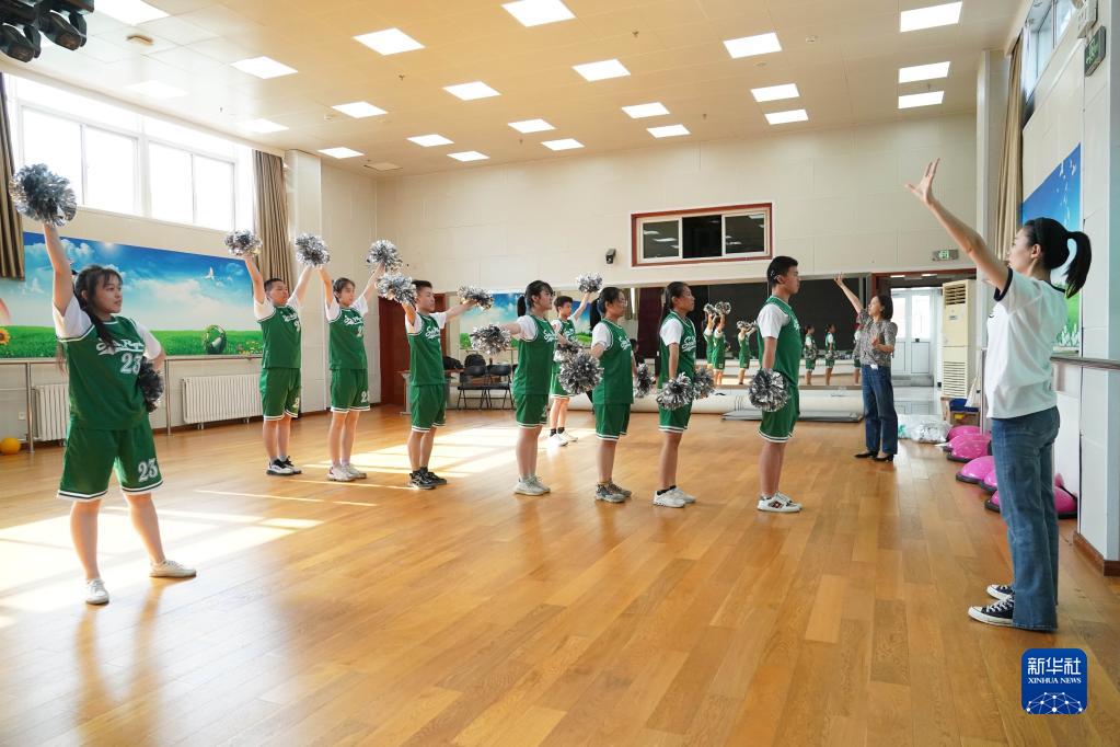 這支拉拉隊由北京市健翔學校舞蹈團的聽力障礙學生組成。在舞蹈團老師的手語指揮下,他們完成了精彩的表演,現場氛圍熱烈。