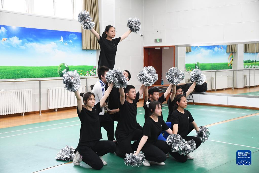 這支拉拉隊由北京市健翔學校舞蹈團的聽力障礙學生組成。在舞蹈團老師的手語指揮下,他們完成了精彩的表演,現場氛圍熱烈。