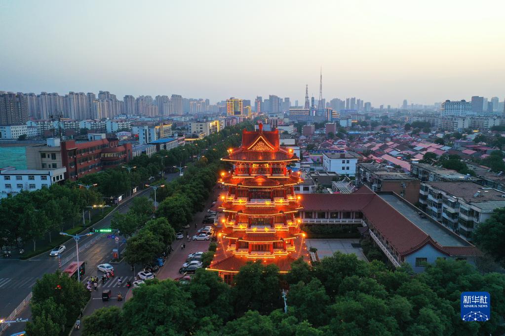 滄州市京杭大運河畔的清風樓(5月15日攝,無人機照片)。