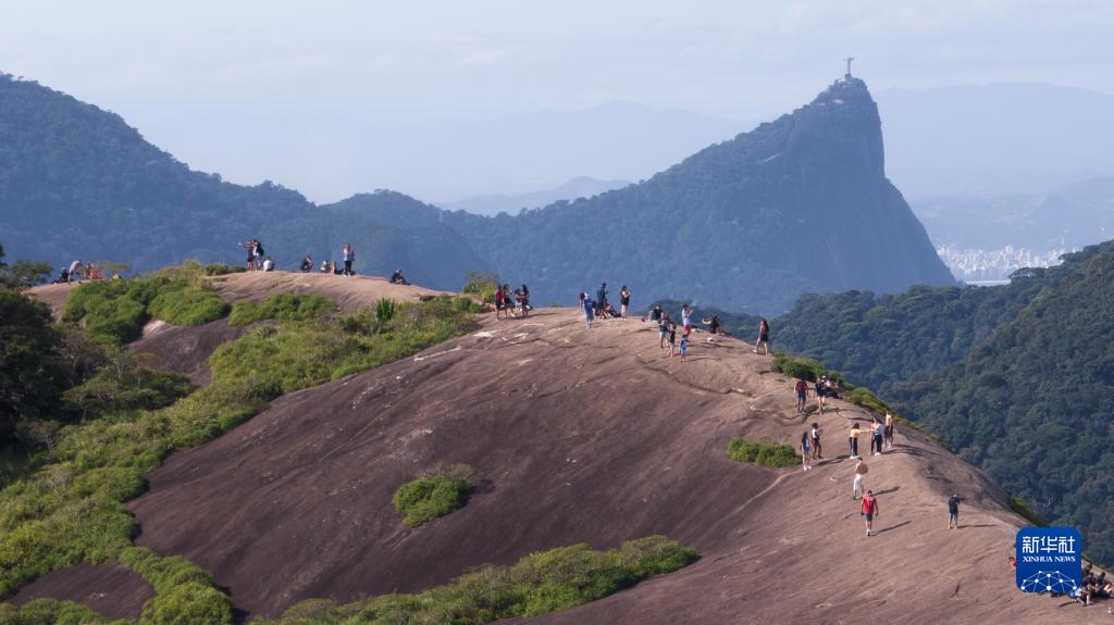 5月21日,游客在巴西里約熱內盧蒂茹卡國家公園游覽(無人機照片)。