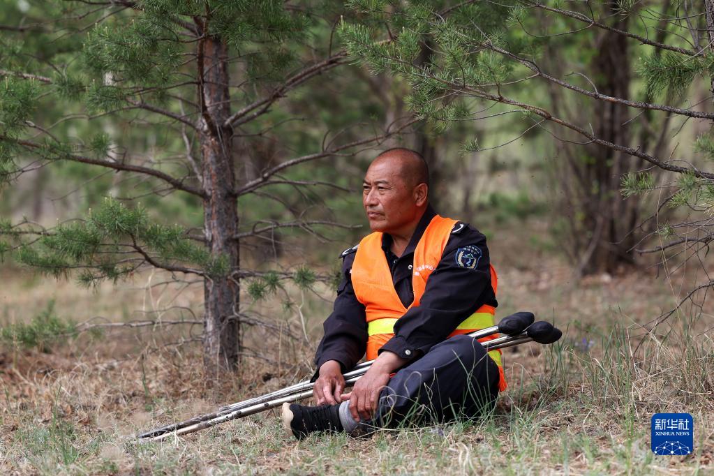 護林員馬裕在巡查途中休息(5月17日攝)。