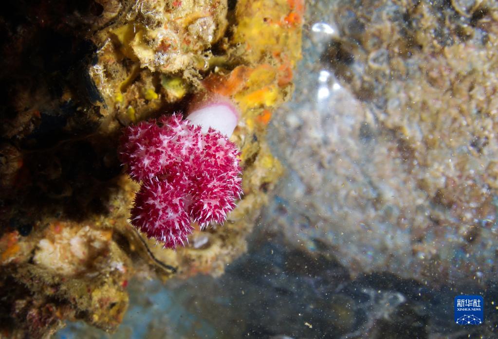 這是在蜈支洲島海域海洋牧場沉船魚礁內拍攝的軟珊瑚(5月16日攝)。