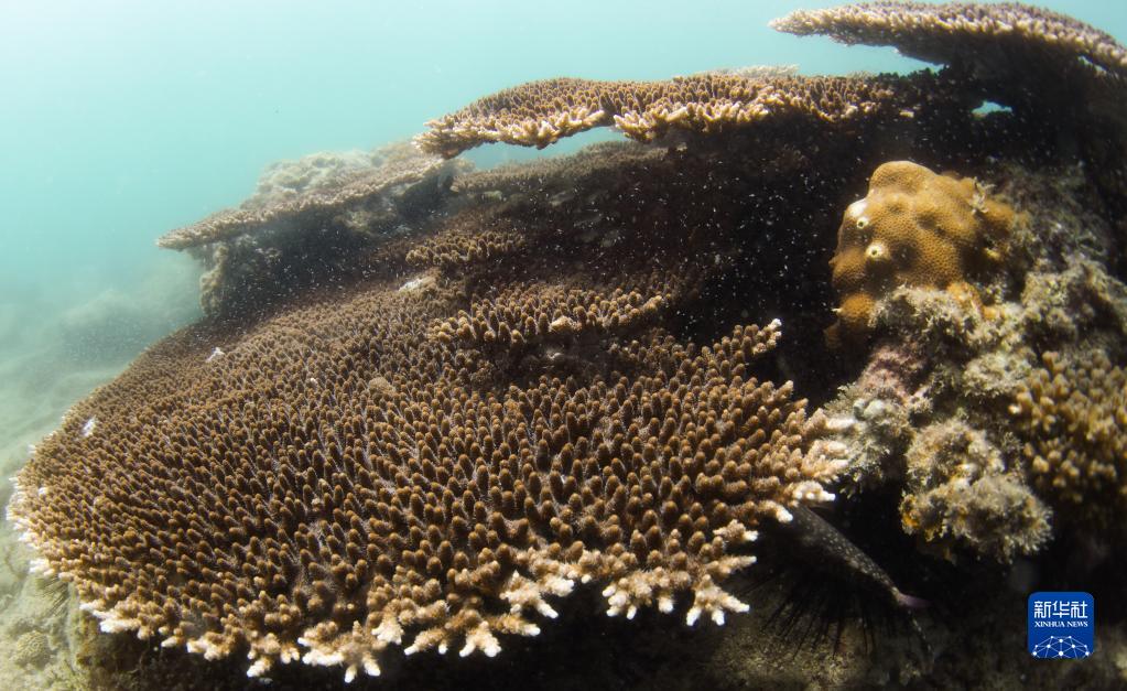 這是在蜈支洲島海域海洋牧場拍攝的風信子鹿角珊瑚(5月17日攝)。