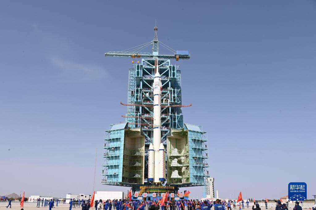 5月22日,神舟十六號載人飛船與長征二號F遙十六運載火箭組合體轉運至發射塔架。